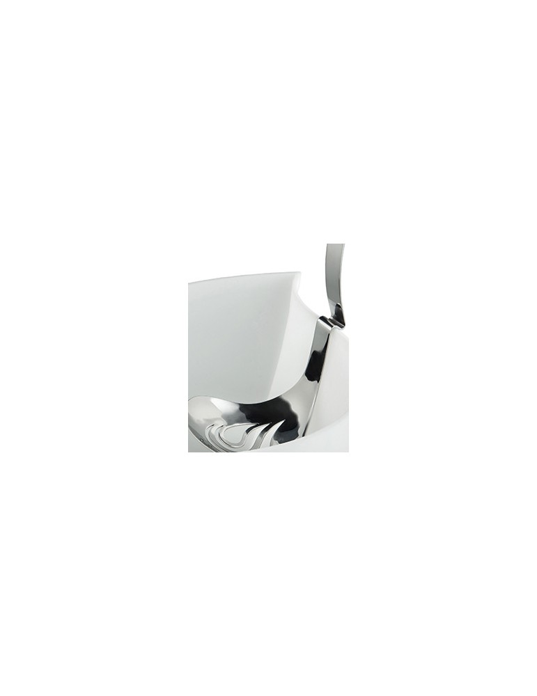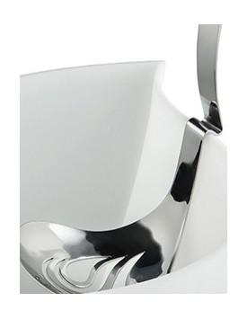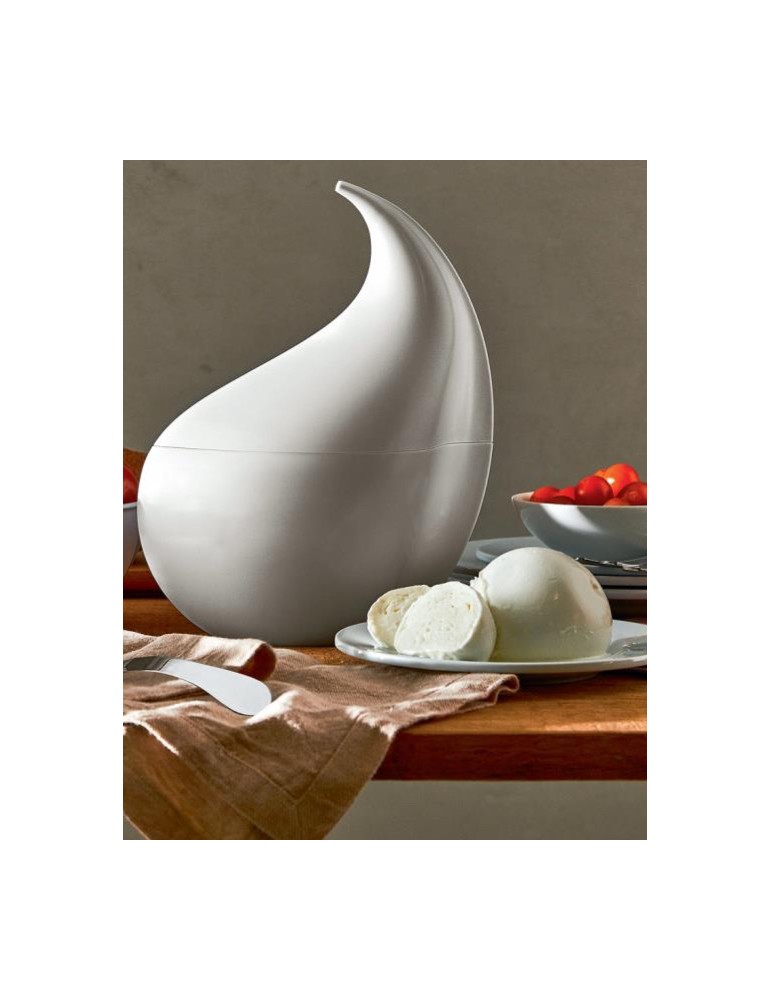 Un oggetto funzionale, risolto in una forma morbida che ricorda sia una gonfia goccia di latte, sia le linee tornite delle corna che contraddistinguono le bufale italiane.