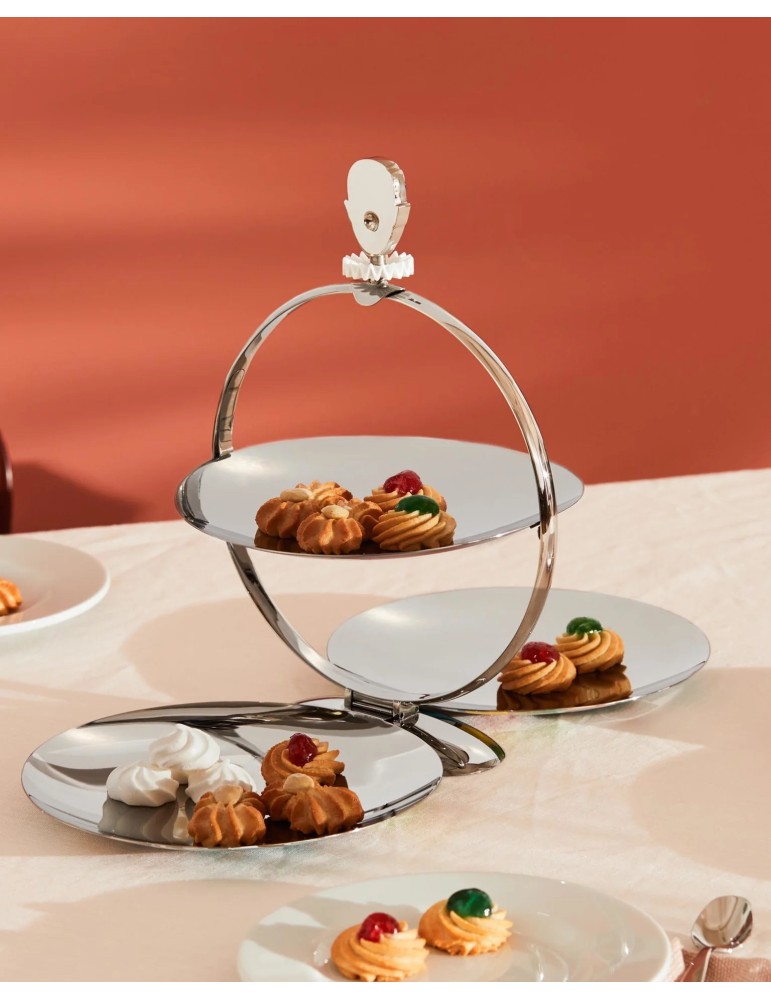 Alzata pieghevole in acciaio inossidabile 18/10 con decoro.