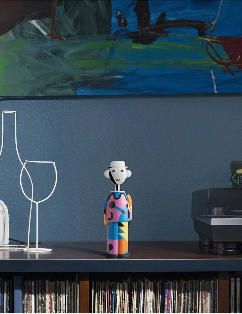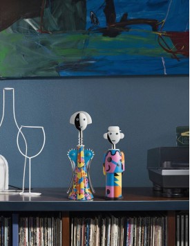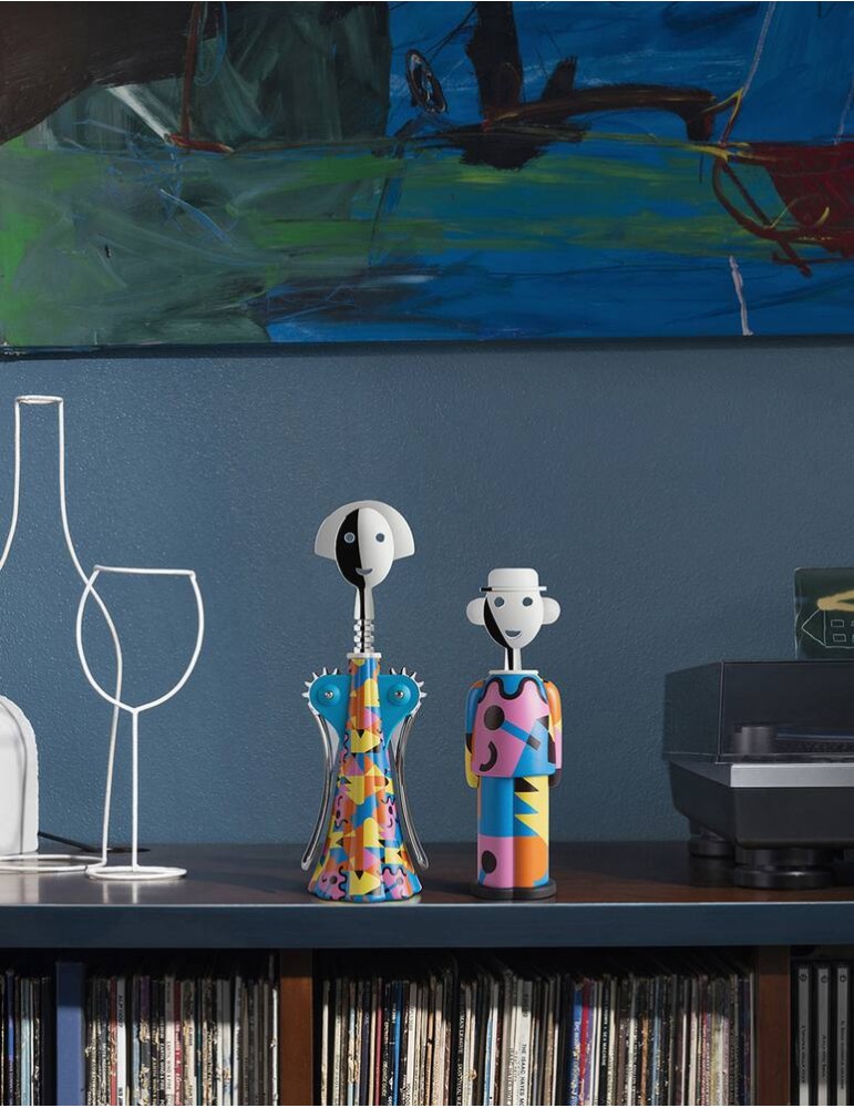 Per i collezionisti di Alessadro Mendini e dei suoi cavatappi trasformisti: Alessandro M. Galla Placidia, impreziosito da uno storico decoro dell’autore che ne esalta il morbido disegno. La suggestione delle luci, dei colori, delle volte mosaicate del piccolo mausoleo di Ravenna dedicato all’imperatrice romana Galla Placidia, ha ispirato questo cangiante gioco di forme e colori, che colpisce per la rigorosità delle geometrie in contrasto con le sue tinte vivide e sognanti.