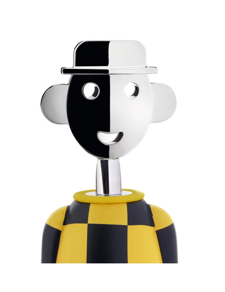 Nato dall'estro creativo di Mendini, questo cavatappi è un autoritratto ironico e trasformista che incarna l’anima giocosa e sofisticata del suo autore.