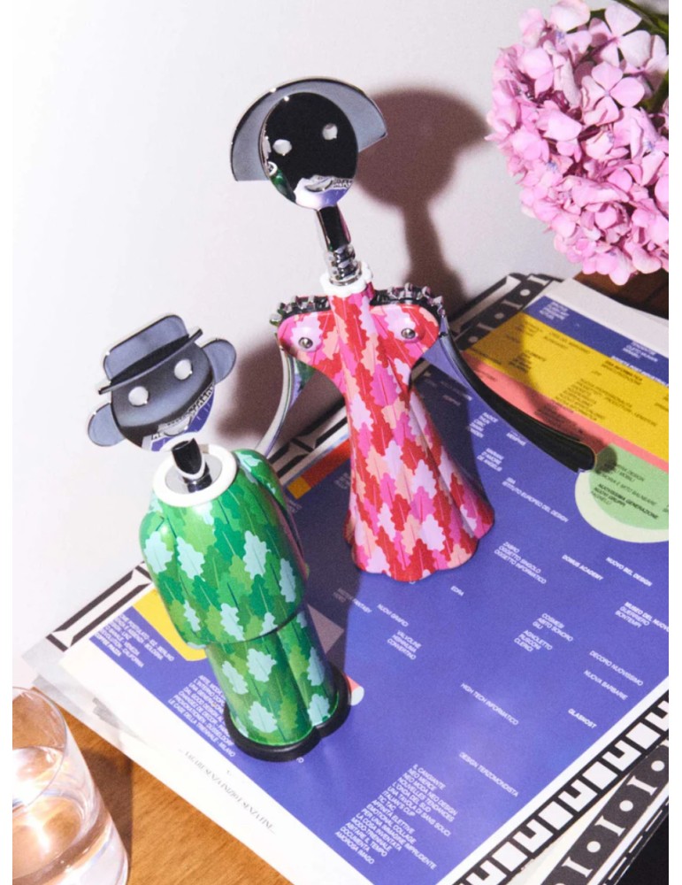 Alessandro M. si veste di un nuovo abito arboreo, un pattern accattivante che valorizza il disegno morbido e delicato di questo iconico cavatappi, nei toni del verde.