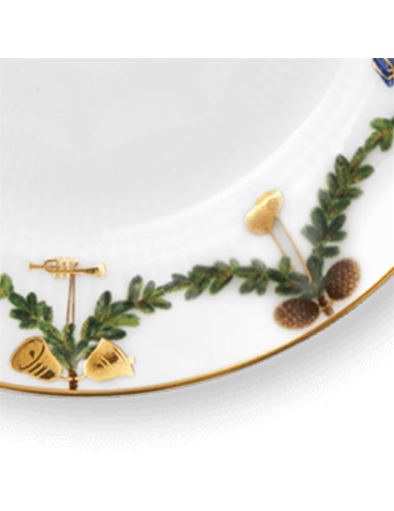 Decorato con affascinanti ornamenti e una classica ghirlanda di abete rosso che pende dal bordo rivestito in oro, questo piatto natalizio Star Fluted da 19 cm è ideale come piatto da pranzo o piatto da dessert.