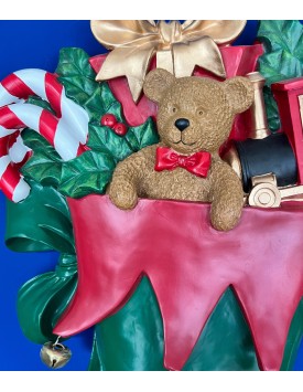 Calza da parete ricca di dettagli finemente realizzata in resina, dipinta a mano e impreziosita da campanelle.