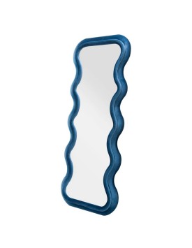 La cornice dello specchio è realizzata in velluto, un tessuto morbido e lussuoso che aggiunge una texture ricca e una sensazione di calore e comfort visivo.