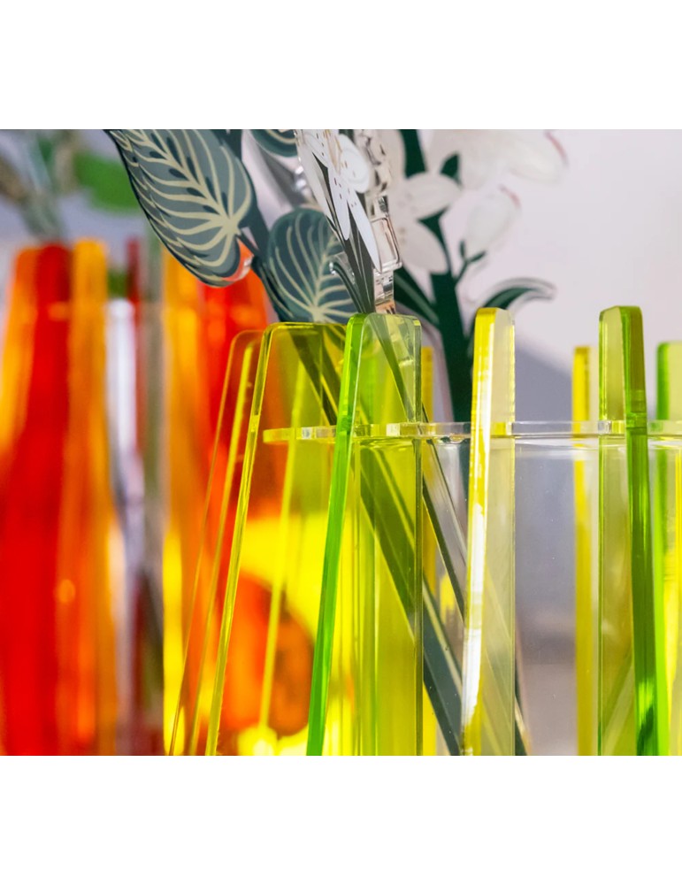 Il vaso Iride valorizza la luce naturale generando sfumature sempre diverse e giochi cromatici in continua evoluzione.