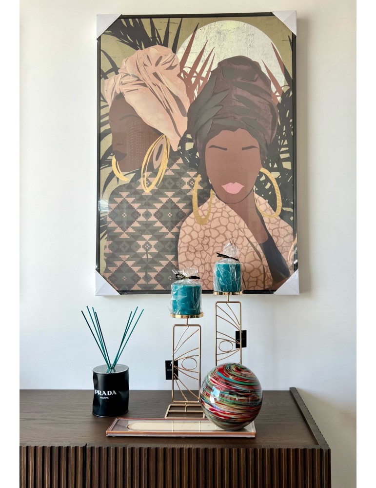 Decori etnici e dettagli dorati rendono questo quadro un complemento d'arredo perfetto per arredare i vostri ambienti con un'affascinante atmosfera Ethno Chic.