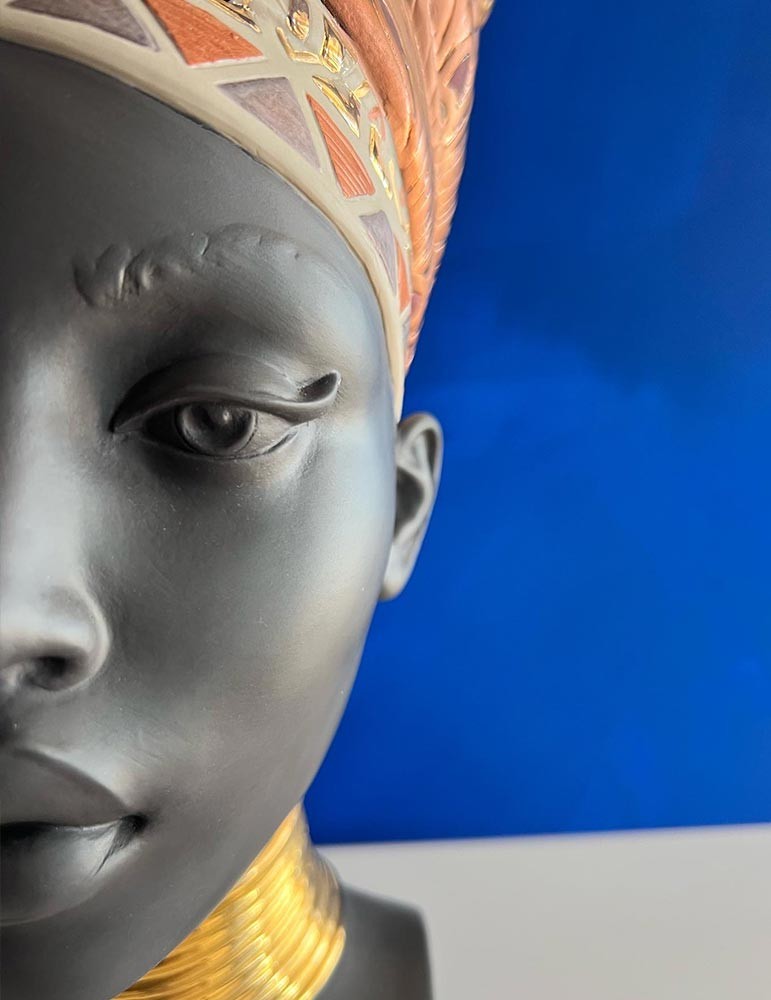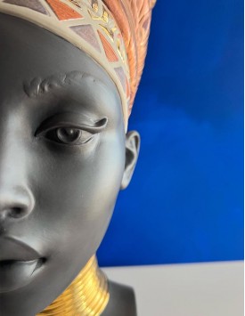 La statua Anima Africana di Lladrò è un'opera d'arte in porcellana, rappresentante il busto di una donna dai lineamenti squisitamente scolpiti, vestita con un tradizionale velo africano. Perfetta come complemento d'arredo, questa statua esprime la bellezza e la cultura africana.